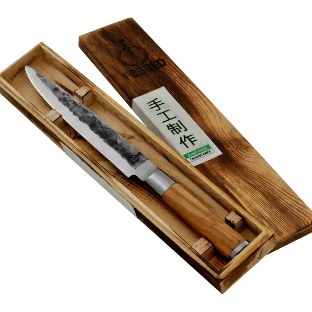 Het Forged Olive vleesmes is perfect voor mensen die regelmatig in de keuken te vinden zijn. Dit Forged vleesmes heeft een scherp lemmet van Japans staal met een lengte van 20,5 centimeter. Hierdoor kunt u gemakkelijk uw vlees snijden. Dankzij de olijfhouten handgreep heeft het Forged vleesmes een warme look.