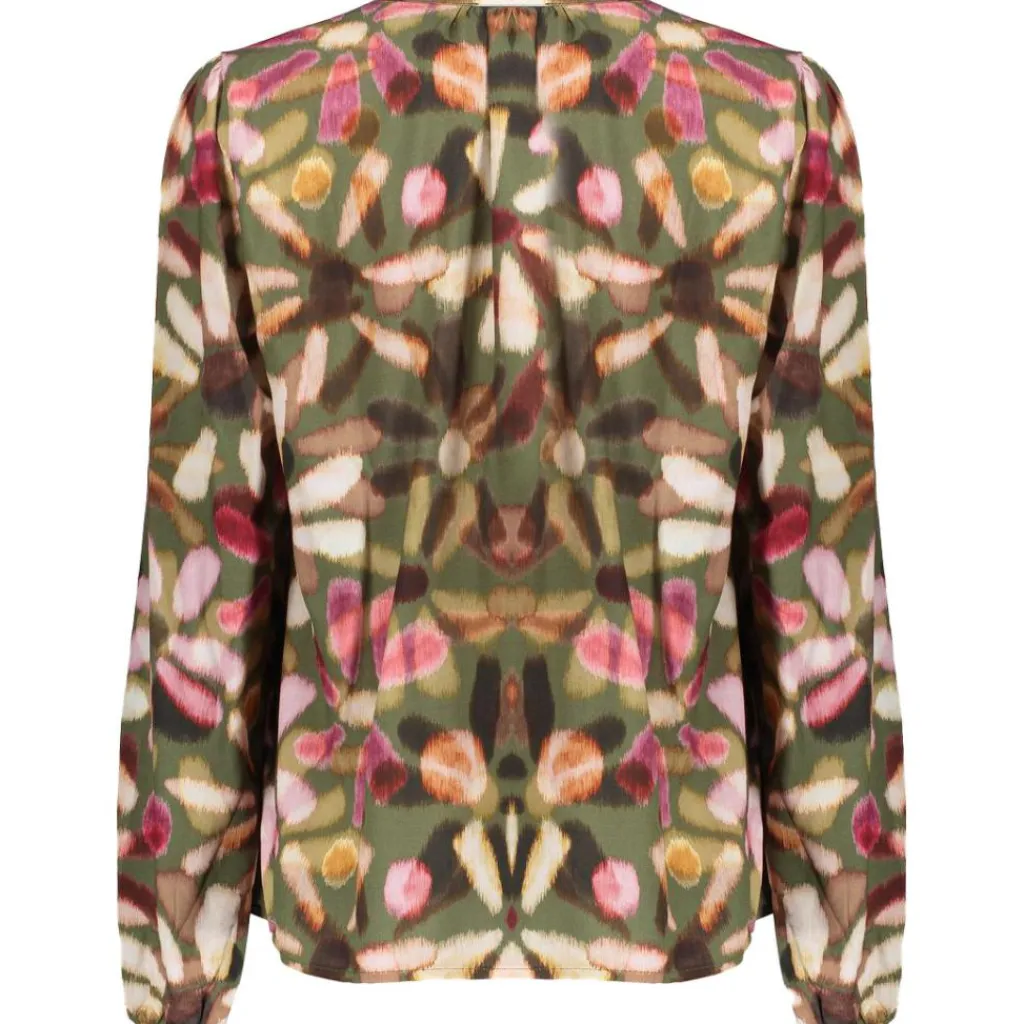 De Geisha blouse is voorzien van touwtjes bij de kraag, waardoor de uitstraling aangepast kan worden. De ruimvallende mouwen in combinatie met de elastische boorden zorgen voor een chique uitstraling.
