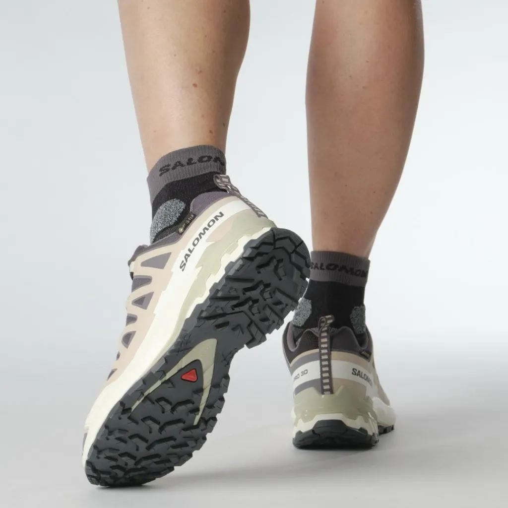 De noppen van de Salomon XA PRO 3D V9 GORE-TEX hardloopschoenen hebben een diepte van 3,5 millimeter en de zolen zijn gemaakt van rubber, waardoor u uitstekende grip ervaart op diverse ondergronden in rotsachtig gebied. De tussenzool geeft energie terug voor krachtigere stappen, maar biedt tegelijkertijd demping voor het zacht opvangen van uw stappen. Dankzij het GORE-TEX membraan blijven uw voeten droog en de teenkap beschermt uw tenen tegen een stootje.