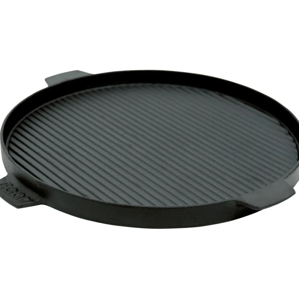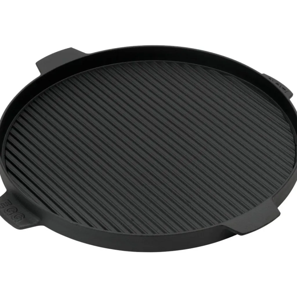 De Big Green Egg Cast Iron Plancha grillplaat is speciaal ontwikkeld voor de Big Green Egg MiniMax. De grillplaat heeft ribbels voor het grillen van heerlijk eten, maar ook een gladde zijde voor het bakken van pannenkoeken.