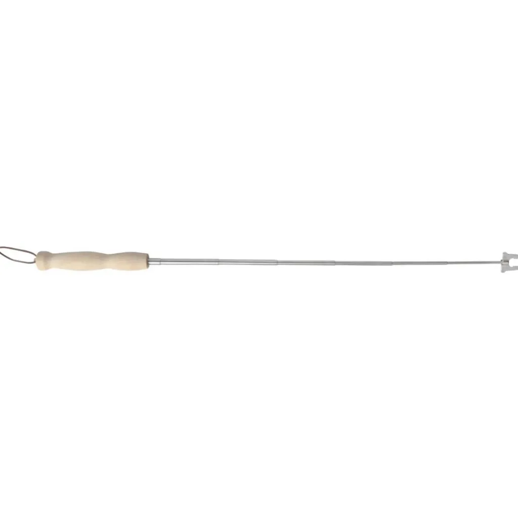 De Esschert Design BBQ Vork telescopisch is uitrekbaar en daarmee zeer geschikt om mee te nemen in uw koffer of tas. Ingevouwen heeft deze barbecuevork een lengte van 3,3 centimeter maar deze kunt u uitvouwen tot 80 centimeter lang. Met deze lengte kunt u eenvoudig uw etenswaren roosteren boven open vuur. Dankzij het lusje aan het handvat kunt u de vork ook ophangen wanneer u deze niet gebruikt.