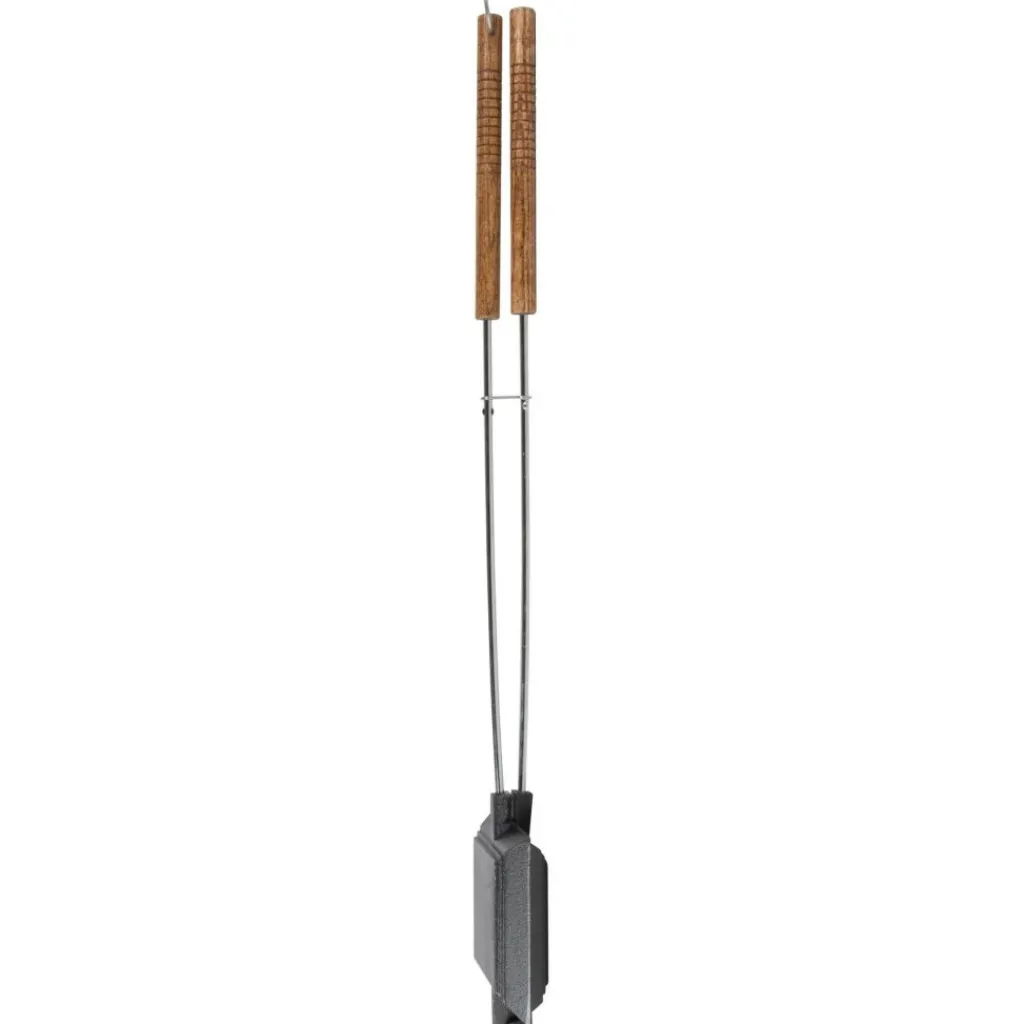 Wanneer u eten moet klaarmaken boven open vuur denkt u niet direct aan tosti’s. Met het Esschert Design tosti ijzer is dit wel mogelijk! Dankzij de lange steel kunt u zeer gemakkelijk het ijzer boven open vuur houden zonder dat het te warm wordt aan uw handen. Met de haak aan de steel kunt u het ijzer hangend opbergen wanneer u deze niet meer gebruikt.