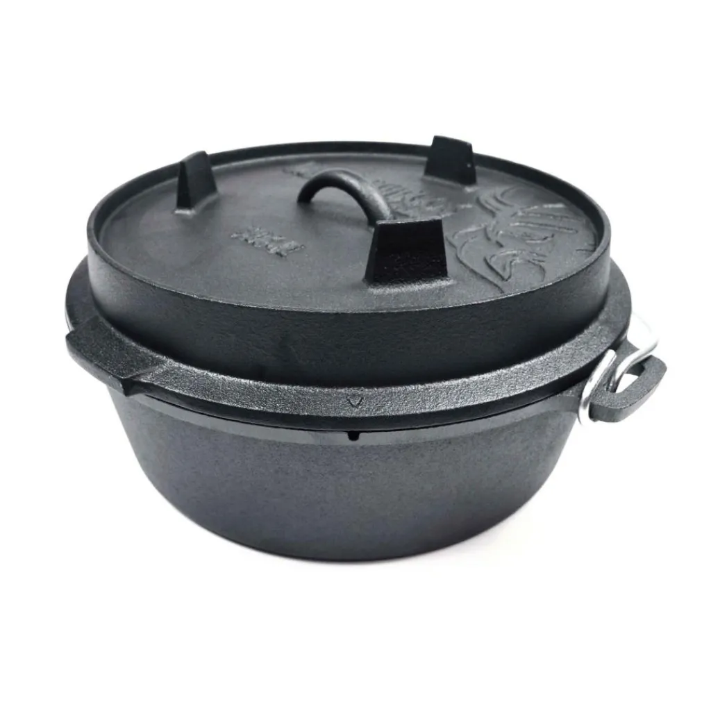 De Valhal Outdoor Dutch Oven is een gietijzeren pan geschikt voor alle warmtebronnen. Verder zit er een handig hengsel om de Dutch Oven om deze aan een driepoot te hangen. In de rand zit een uitsparing voor een draad van een thermometer. De deksel is ook te gebruiken als een koekenpan, dankzij de pootjes. De Dutch Oven is meteen te gebruiken omdat deze is behandeld met natuurlijke olie.