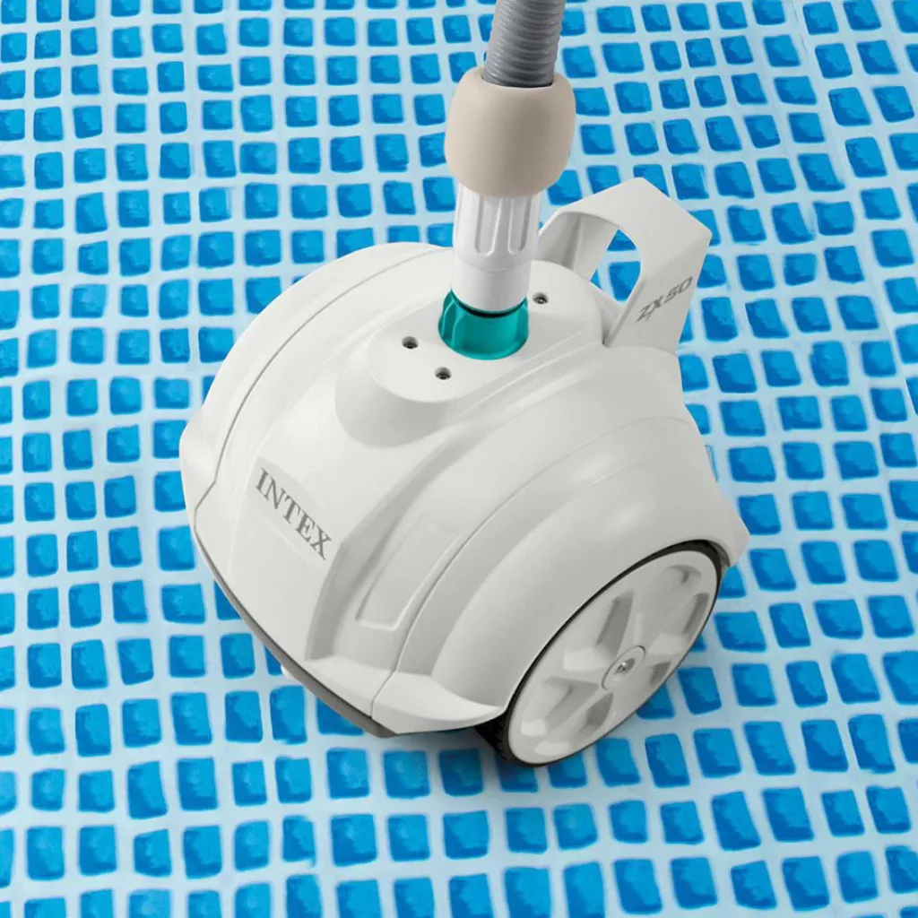 De Intex ZX50 automatische zwembadstofzuiger is een handige oplossing voor het effectief schoonmaken van de zwembadvloer. Deze zwembadstofzuiger van Intex moet aangesloten worden op een pompsysteem met een pompopbrengst tussen de 3,4 en 5,6 liter per uur.
