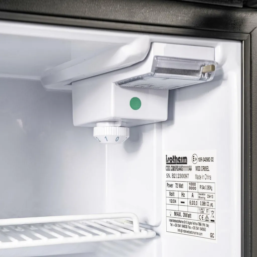 De Cruise Elegance 85 compressor koelkast van Isotherm is ruim en in staat om al uw levensmiddelen te koelen. Enkel wanneer de opgeslagen kou volledig verbruikt is, zal de compressor opnieuw opstarten. Een extra dikke isolatielaag zorgt voor weinig stroomverbruik. Deze koelkast is gemakkelijk in te bouwen.