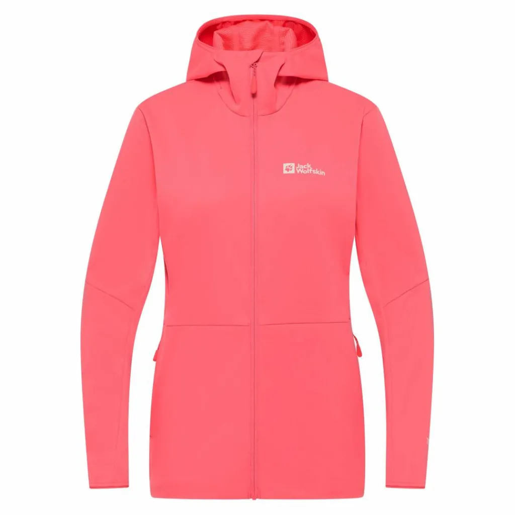 Deze Jack Wolfskin Feldberg softshell jas voor dames is gemaakt van ademend, winddicht en waterafstotend TEXASHIELD PRO SINGLE JERSEY materiaal. Dit Jack Wolfskin jack heeft twee heupzakken met ritsen en een vaste capuchon.