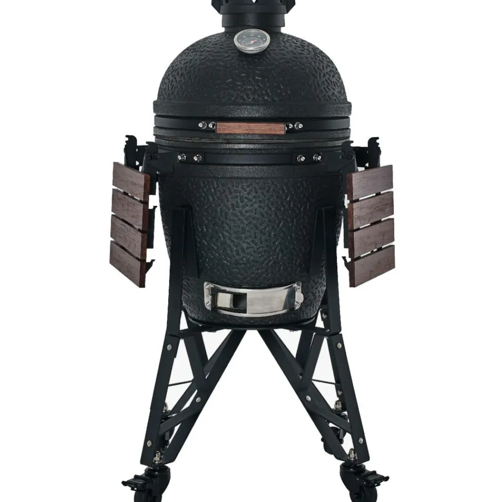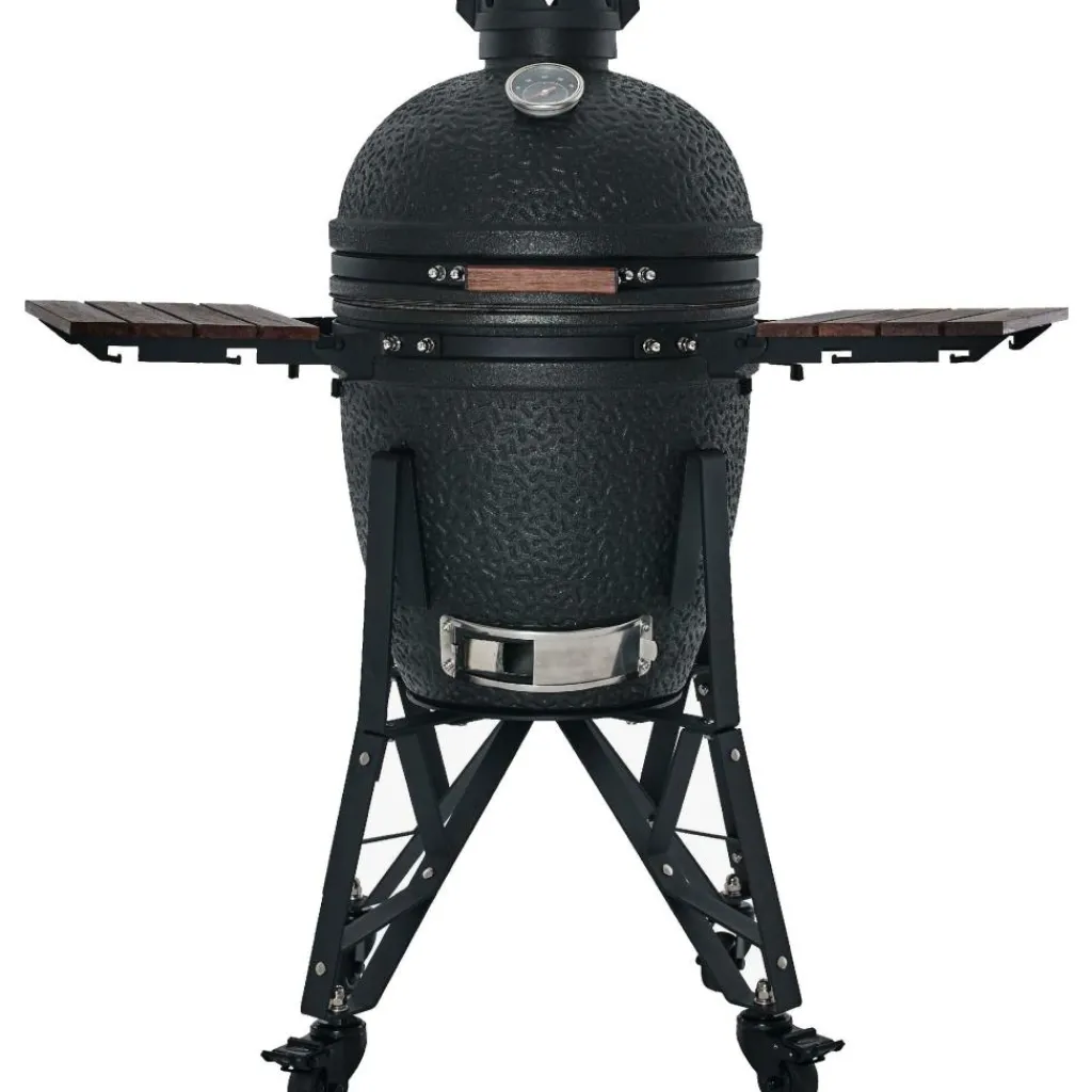 De The Bastard Urban Medium Compleet 2025 houtskoolbarbecue biedt genoeg grillruimte voor 2 tot 6 personen. Deze The Bastard houtskoolbarbecue wordt geleverd met onderstel en twee zijtafeltjes. De precisie topschijf kunt u aanpassen aan uw gewenste luchtstroom en met de thermometer aan de buitenzijde kunt u de warmte goed in de gaten houden. De barbecue is voorzien van een plate setter, charcoal basket, ash lifter en grillrooster van 6 millimeter dikte. Deze kamado is vorstbestendig, waardoor u op ieder moment in het jaar kunt barbecueën.