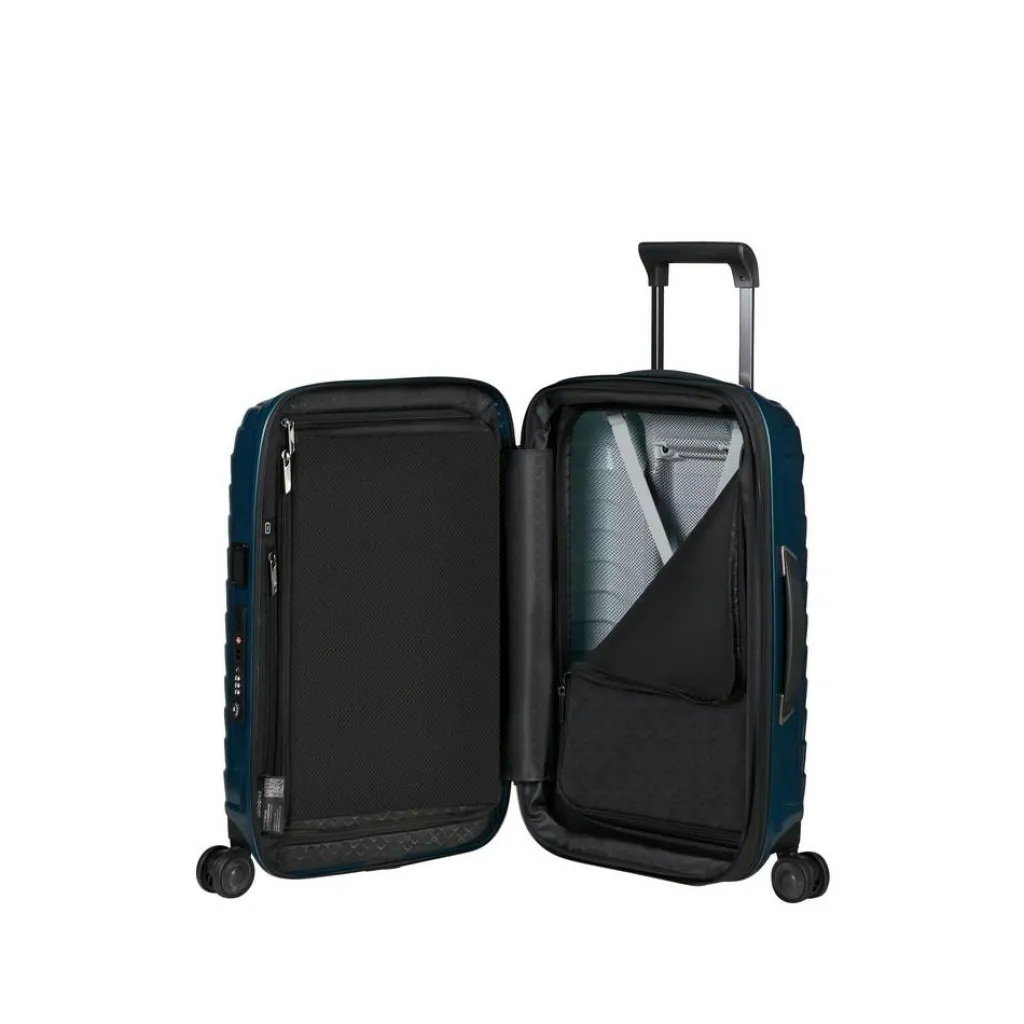 Deze Samsonite Proxis Spinner 55 koffer komt in de kleur petrol blue. De koffer is uitgerust met een dubbele trekstang, een plek voor powerbanks om apparatuur op te laden en soepele wielen om comfortabel van A naar B te gaan. De binnenzijde heeft genoeg ruimte voor al uw spullen voor een leuk weekend weg.