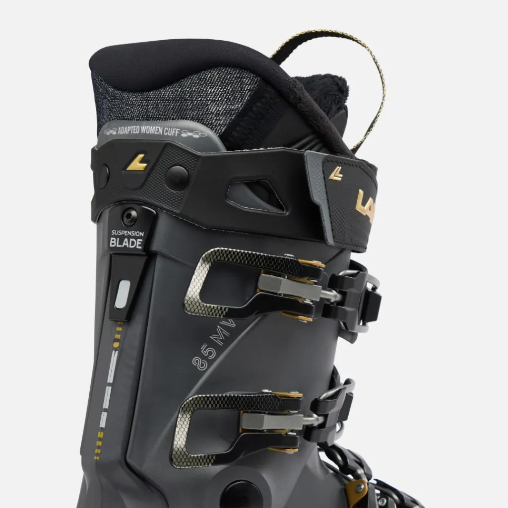 Deze Lange Shadow 85 MV skischoenen voor dames zijn ideaal voor de gevorderde all mountain skiërs. De skischoenen zorgen voor een aangenamer ski-ervaring met meer gevoel, kracht en stabiliteit. De Suspension Blade in de skischoen zorgt voor een soepelere verbinding tussen de boven- en ondermanchet. De binnenschoen sluit aan op de anatomie van de voet voor meer comfort.