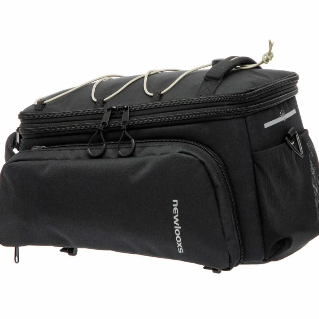 De New Looxs Sports Trunkbag fietstas is ideaal om te gebruiken als sporttas als u met de fiets naar het sporten gaat. Dit komt omdat u hem gemakkelijk bevestigt aan uw bagagedrager en meeneemt aan de afneembare draagriem of het handvat. U kunt de fietstas in ruimte aanpassen naar uw behoeften, doordat er verschillende ritsen zijn die de opbergruimte groter maken wanneer ze opengeritst zijn. Dankzij de regenhoes is deze tas volledig waterdicht en omdat er reflecterende elementen op zitten, bent u beter zichtbaar in het donker.