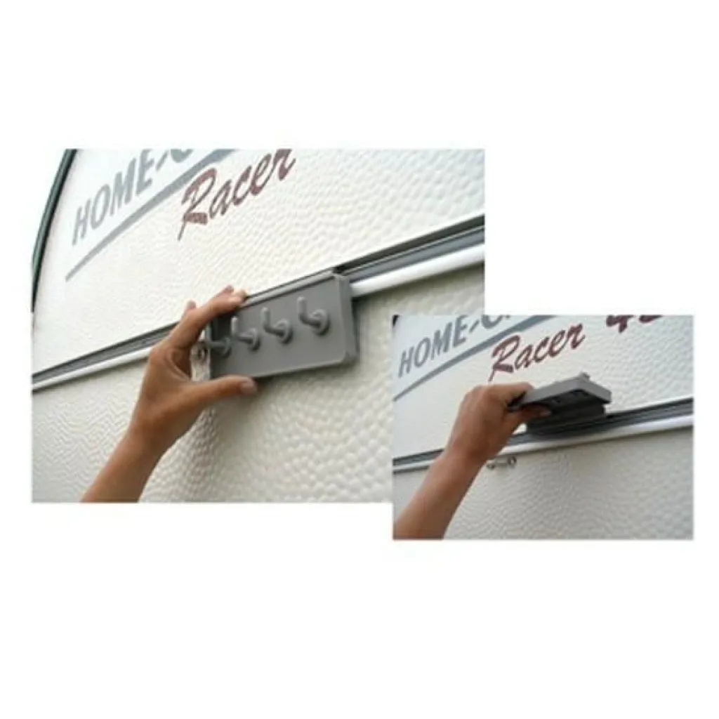 Deze kapstok is eenvoudig te bevestigen aan de caravan door het in de rail die zich aan de zijwand bevindt te schuiven. Door dit mechanisme zit de kapstok altijd stevig vast en kan het niet loslaten als er wat zwaardere spullen aanhangen.