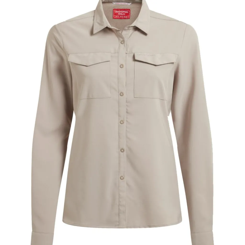De Craghoppers NosiLife Pro III blouse voor dames is gemaakt van gerecycled, stretch materiaal dat voor veel soepelheid en comfort zorgt. Daarnaast is de blouse gemaakt met verschillende technologieën. Hierdoor is de blouse insectwerend, vochtregulerend en biedt deze UPF50+ zonbescherming. Verder heeft de blouse 3 zakken, waarvan 1 met verborgen rits en beveiligingsvak. De mouwen zijn oprolbaar en blijven op hun plek door de knoopsluiting.