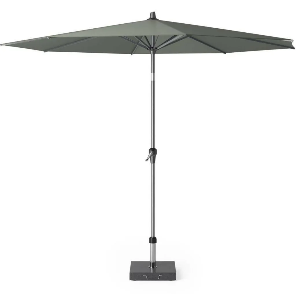 De Platinum Riva parasol heeft een moderne, strakke uitstraling. Deze ronde Platinum parasol heeft een olijfkleurig polyester doek met een diameter van 3 meter. Verder is de Riva parasol voorzien van een stevige deelbare mast, easy-up opdraaimechanisme en doekspanners voor een extra strakke uitstraling. Met het kantelsysteem creëert u altijd schaduw in uw tuin of op het balkon. Deze Riva parasol wordt geleverd exclusief parasolvoet, deze is optioneel verkrijgbaar. Een Platinum parasolvoet van ten minste 60 kilogram is een goede combinatie met deze parasol.