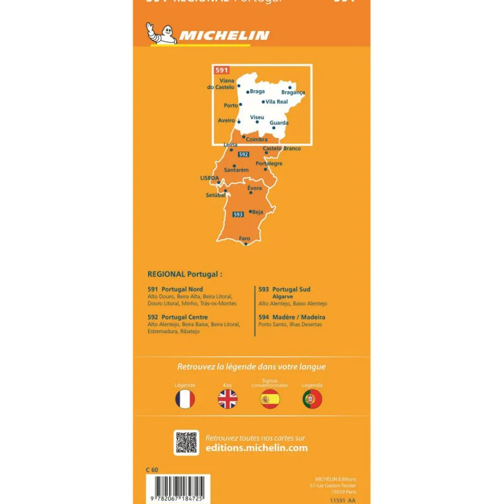 De Michelin 591 Noord-Portugal wegenkaart helpt u om het mooie noorden van Portugal met de auto te verkennen. In deze uitgebreide wegenkaart van Michelin vindt u een combinatie van weginformatie en toeristische informatie. Verder heeft deze kaart een schaal van 1 : 300.000 en stadsplattegronden van Porto, Braga, Guimaraes, Aviero en Viseu.