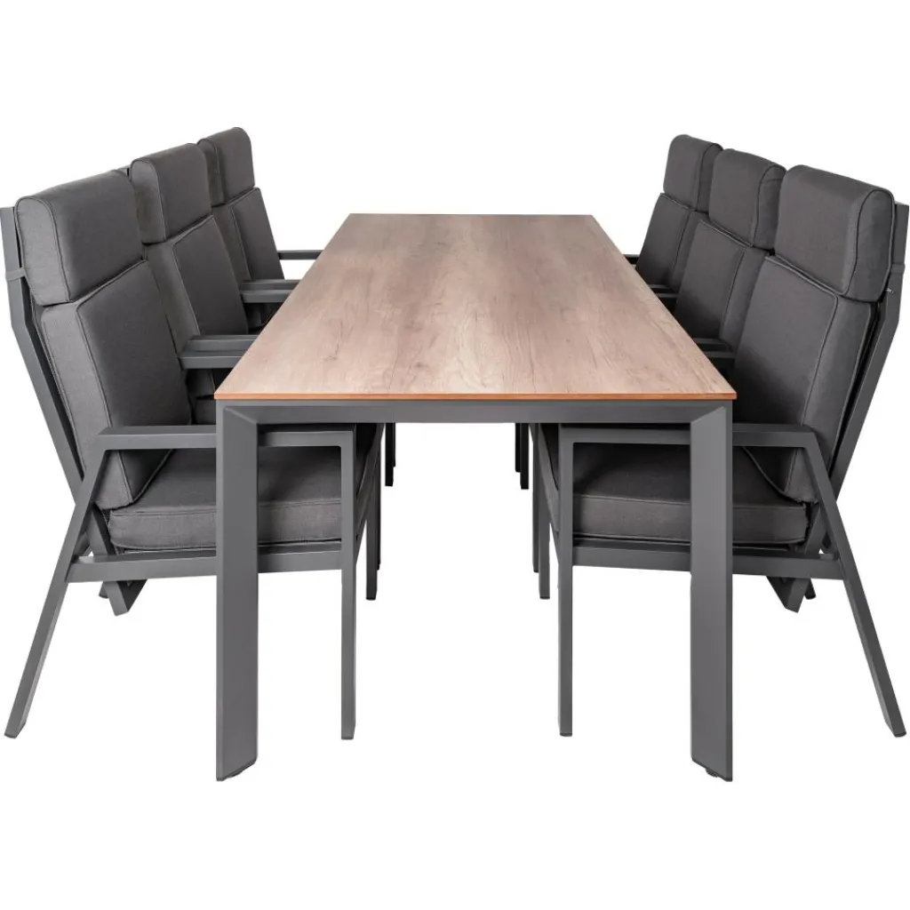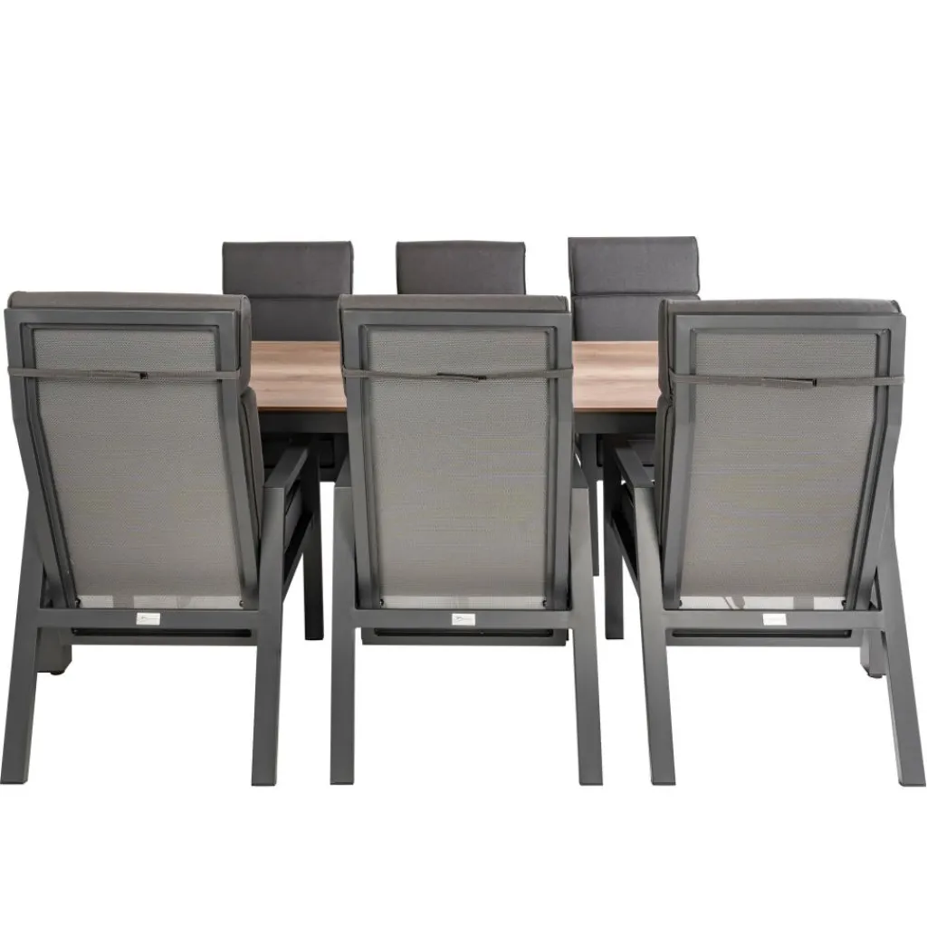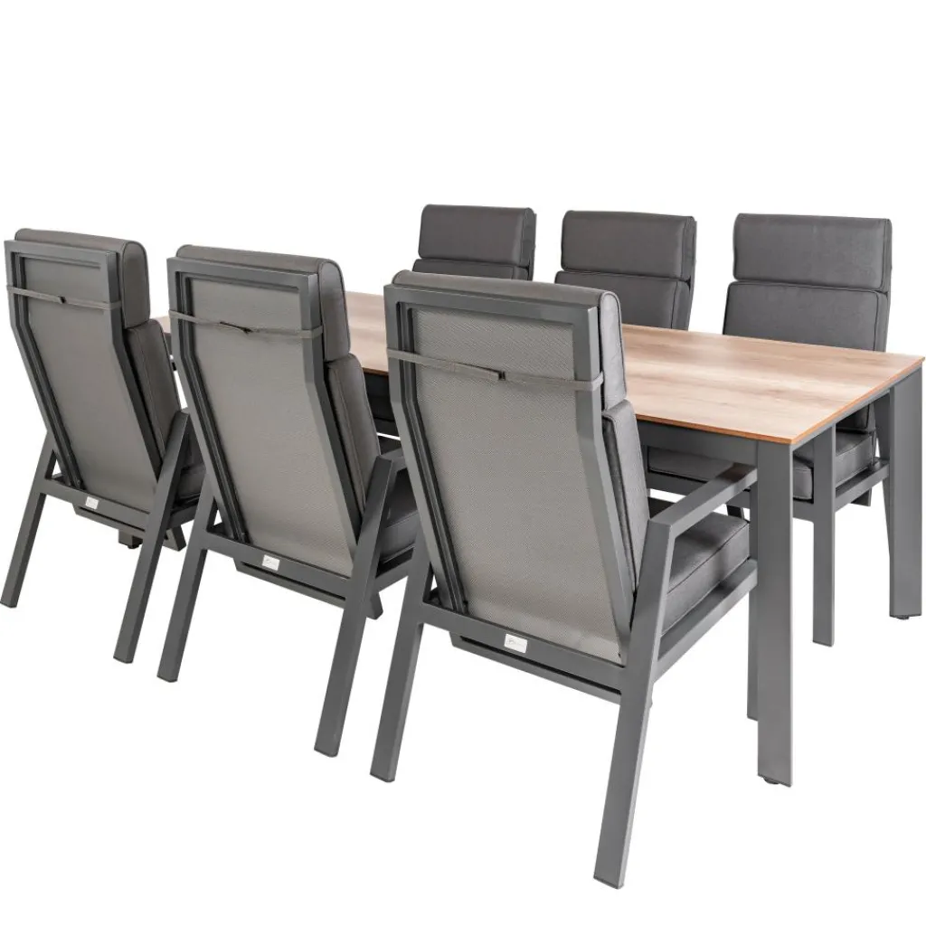 Deze moderne SENS-Line Elena Quinta 220 x 100 cm tuinset zorgt voor een optimaal zitcomfort in de tuin. De tuinset is perfect om tijdens de zomermaanden heerlijk aan te kunnen dineren of na te tafelen. De verstelbare Quinta stoelen hebben zachte kussens.