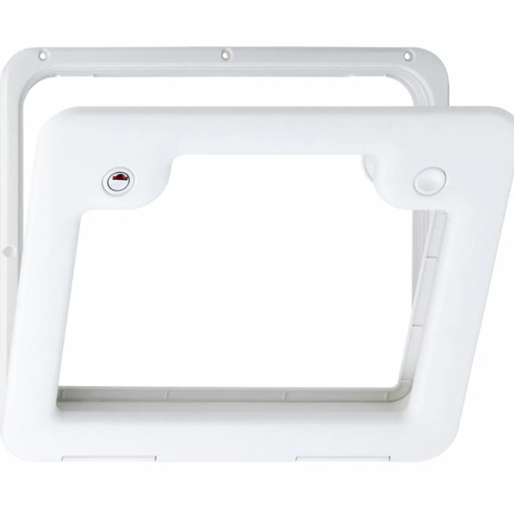 Dit serviceluik is een algemeen compact luik en een standaard cassettetoilet luik. Het frame van dit model is gemaakt van kunststof. Daarnaast is het luik voorzien van 2 drukknoppen waarvan 1 met slot. Dit serviceluik heeft een moderne en gestroomlijnde vormgeving. De geïntegreerde scharnieren zorgen ervoor dat het luik en de buitenwand van de caravan of camper een geheel vormen.
