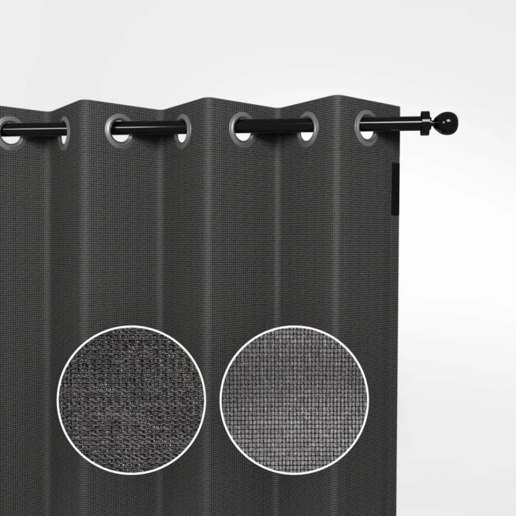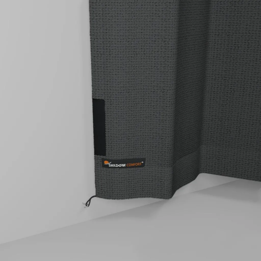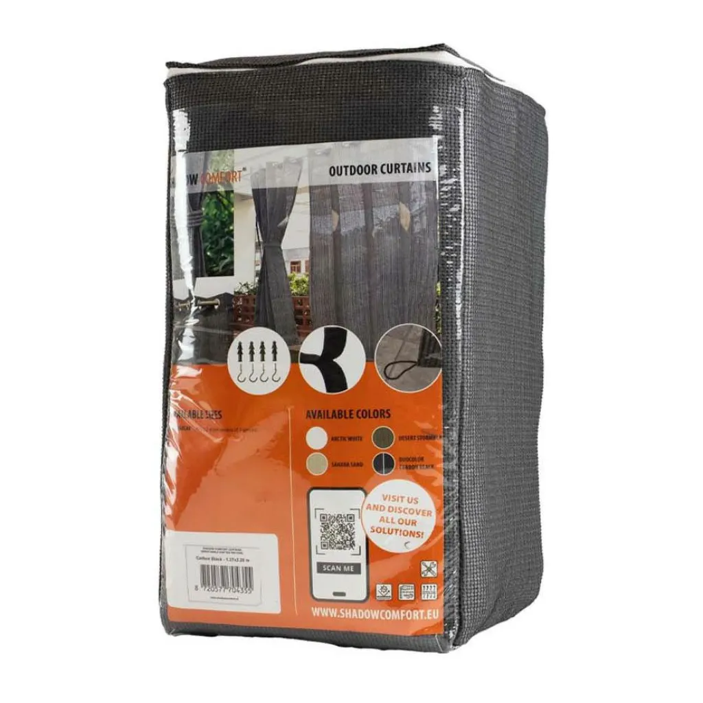 De Shadow Comfort buitengordijnen zijn verpakt per 2 stuks en komen in de strakke kleur carbon black. Deze buitengordijnen van Shadow Comfort zijn tot wel 96,5% UV-bestendig en zijn makkelijk te bevestigen. Aan de bovenkant vindt u RVS gordijnringen en aan de zijkant zitten zeilogen om de gordijnen te bevestigen. Elastische lussen aan de onderkant van de gordijnen zorgen ervoor dat u deze nog extra vast kunt zetten. Deze duurzame Shadow Comfort buitengordijnen kunnen tot slot aan elkaar vastgemaakt worden met klittenband.