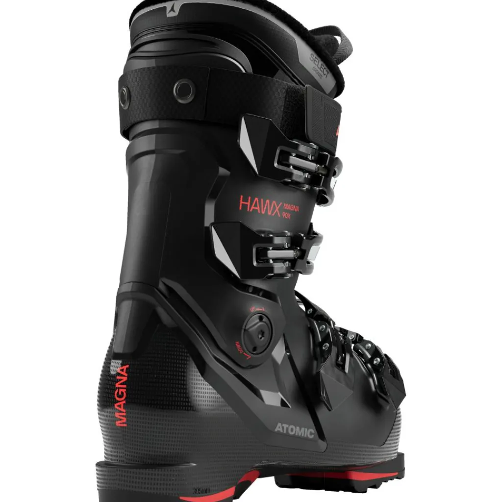 De Atomic Hawx Magna 90 X skischoenen voor heren hebben een Prolite constructie dat door extra versteviging op strategische plekken in de schoenen voor extra stabiliteit en power zorgt. Deze skischoenen van Atomic hebben een Energy Link verbinding aan de achterkant van de shell, zodat u een nog betere respons heeft bij het maken van bochten. De 3D Stretch neus biedt net wat meer speling bij uw tenen en met het Adaptive Fit systeem kunt u meer ruimte creëren rondom uw kuiten. Zo bieden deze skischoenen niet alleen ondersteuning, maar ook draagcomfort.