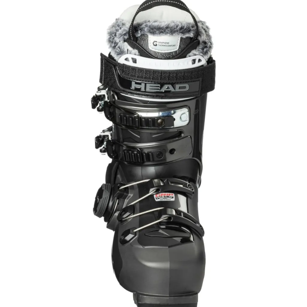 De HEAD Edge 105 W HV GW BOA skischoenen voor dames hebben een comfortabele Perfect Fit 3D voering die anatomisch gevormd is en dankzij het gewoven grafeen goed isoleert. Deze skischoenen van HEAD wikkelen fijn om uw voeten met de BOA sluiting en zijn eenvoudig aan en uit te trekken vanwege de EZ shell. Het lichte ontwerp van deze skischoenen met een responsieve Power Flex zorgt voor goede precisie en controle op de piste. Ook zorgen de gepatenteerde buckles ervoor dat sluiten minder energie kost.