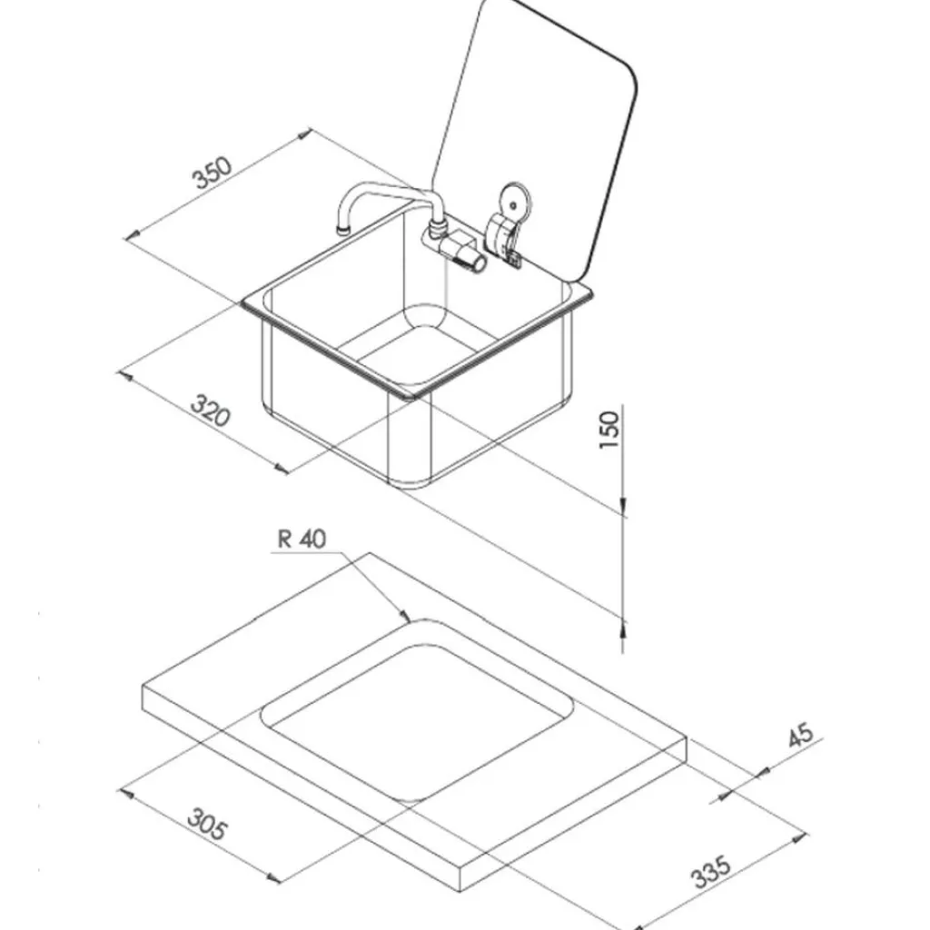 De CAN LR1760 spoelbak 350 x 320 mm is gemaakt van roestvast staal. De CAN spoelbak heeft een hittebestendige afdekplaat van gehard glas. De wasbak wordt geleverd inclusief koudwaterkraan en exclusief afvoer. De CAN haakse afvoerplug past in deze spoelbak. De kraan heeft geen microschakelaar, dus is enkel geschikt in combinatie met een drukpomp of externe schakelaar.