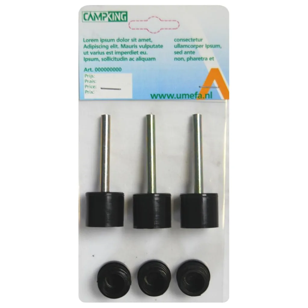 Met een buitendiameter van 19 mm sluiten deze Campking onderdoppen perfect aan op standaard ronde tentstokken. De bovendoppen hebben een metalen punt voor een zeilring of petluifel; de onderdoppen sluiten de buis af, geven grip en houden vuil buiten. Gemaakt voor kampeerders die hun staanders stevig, netjes en duurzaam willen afwerken.