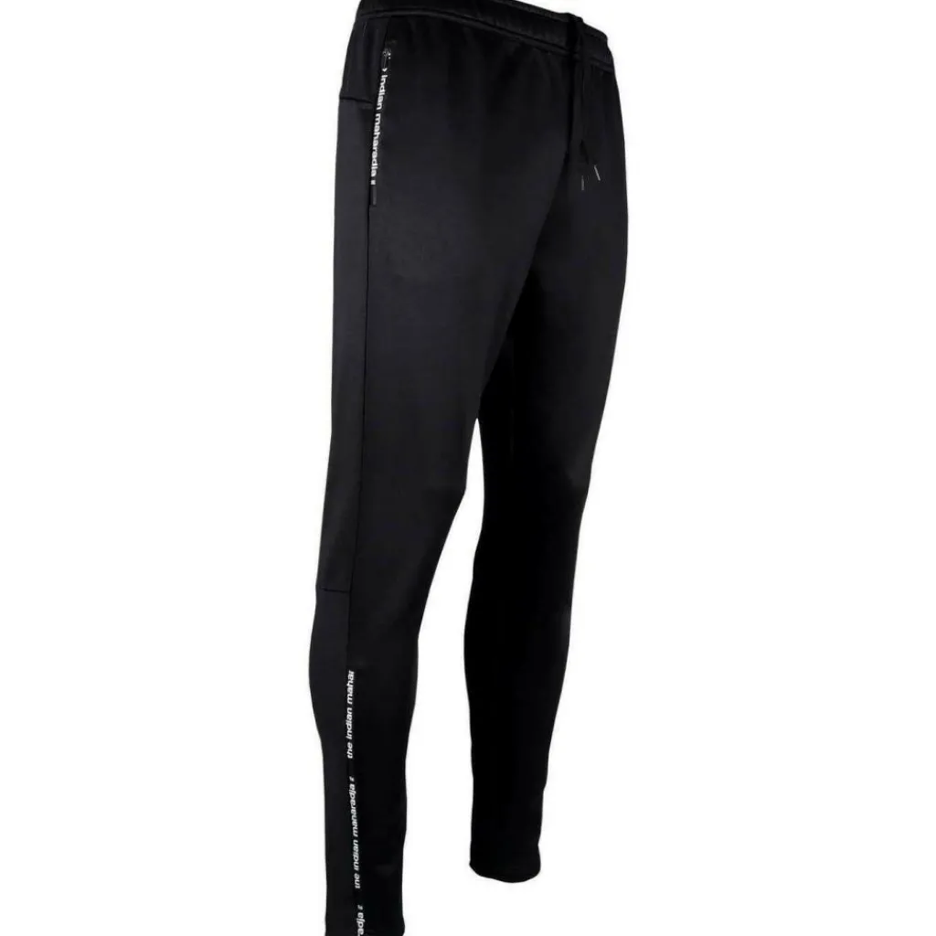 De The Indian Maharadja Poly Terry trainingsbroek voor heren in de kleur black kunt u gemakkelijk verstellen met de koordsluiting in de tailleband. Dankzij de ritsjes bij de enkel kunt u de sportbroek makkelijk over uw schoenen aan- en uittrekken.