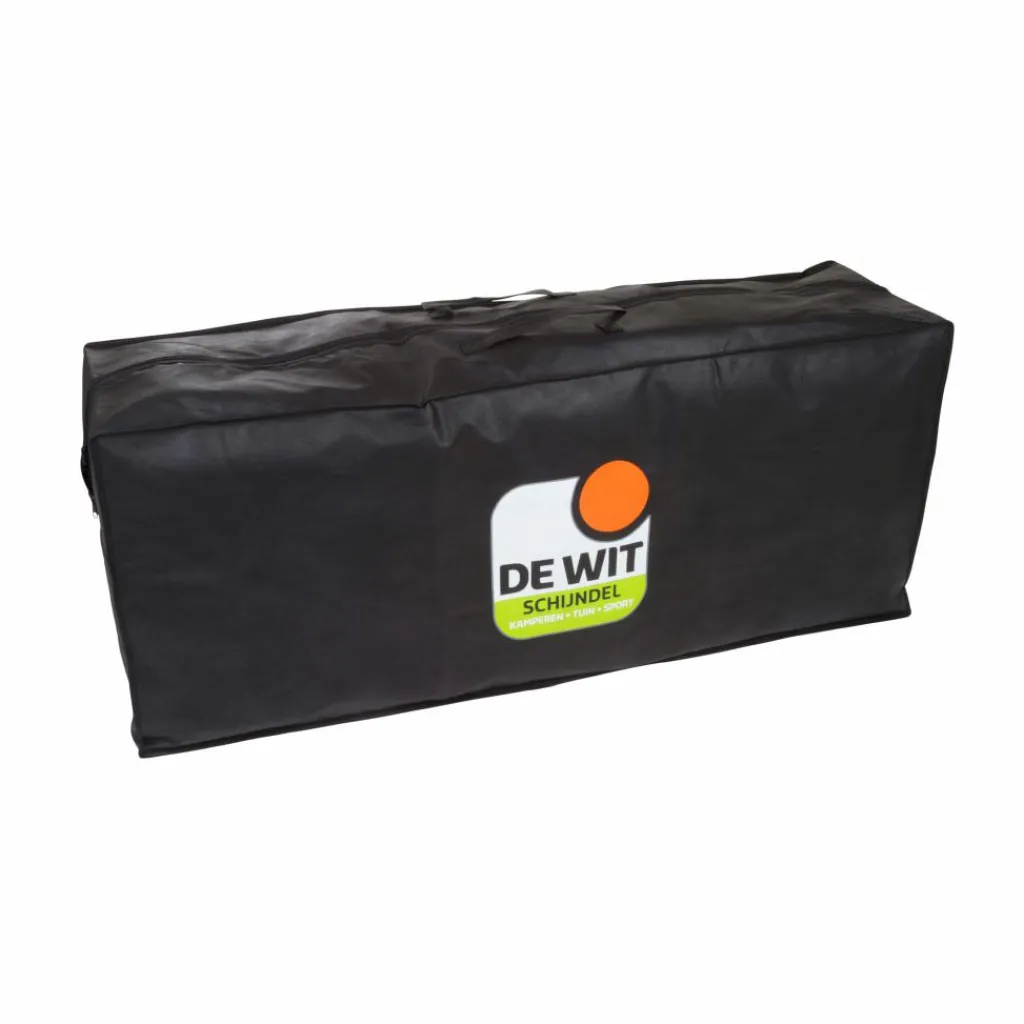 Met deze kussentas van De Wit bergt u uw tuinkussens schoon en droog op. Deze kussenhoes met het De Wit Schijndel logo heeft ruimte voor 4 tot 6 tuinkussens met een afmeting van 123 x 52 x 35 centimeter.