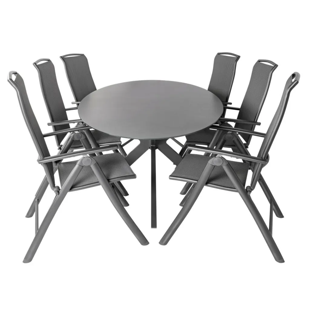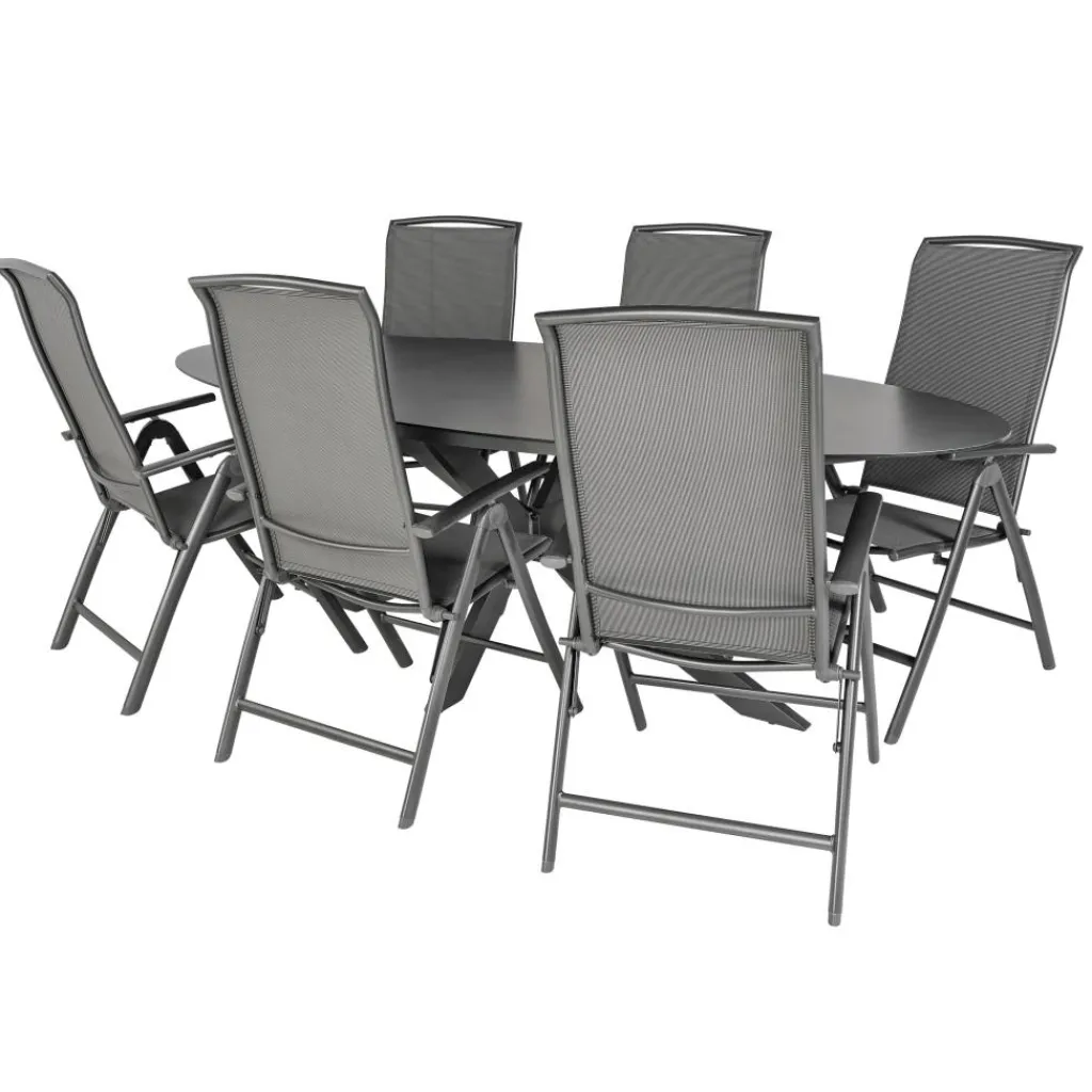 Met de Bardani Varesse 240 x 108 cm Capri 6 tuinset kunt u heerlijk genieten van lange avonden en zonnige lunches. Met de ruime tafel en zes comfortabele stoelen in stijlvol antraciet, brengt u moeiteloos sfeer en gemak naar uw tuin of terras. Genieten van het leven, dat doet u met de Bardani Varesse 240 x 108 cm Capri 6 tuinset.