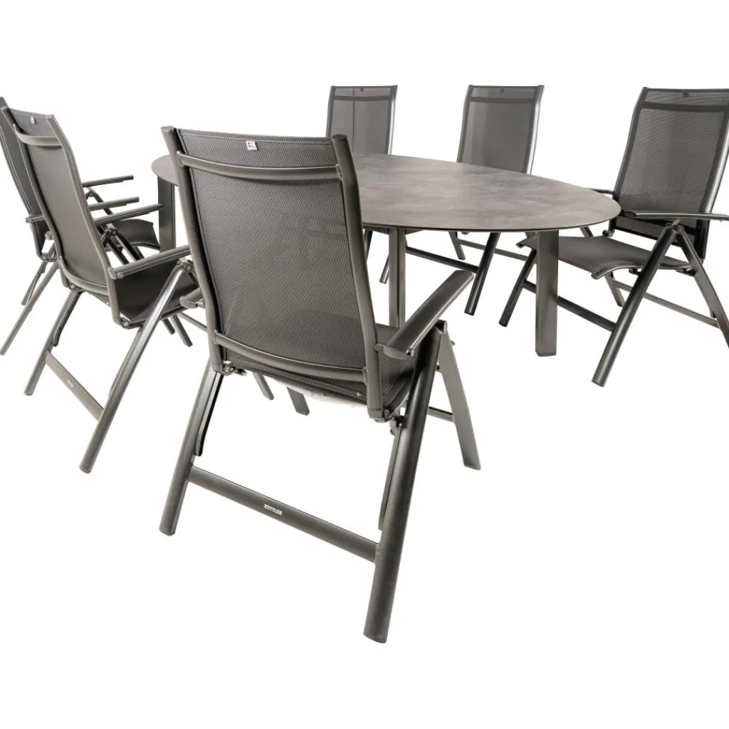 - 6xKettler Legato Curve verstelbare tuinstoel antraciet