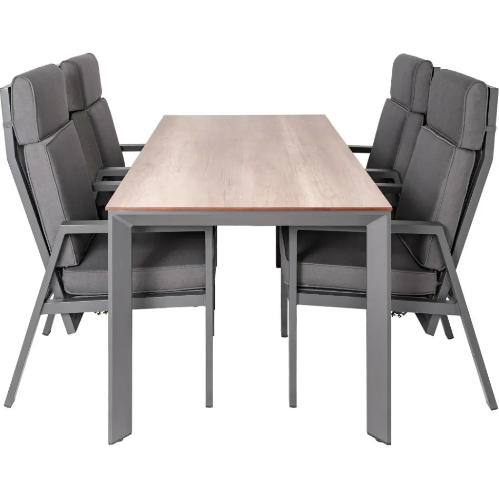 Met deze moderne Elena Quinta 180 x 90 cm tuinset van SENS-Line heeft u een set die voor veel comfort zorgt en bij elk seizoen past. De ruime Elena tafel en het frame van de Quinta stoelen zijn makkelijk te reinigen. De set kan het hele jaar buiten staan, zodat u elk seizoen kunt genieten van het weer. Alleen de kussens moeten opgeborgen worden, zodat deze langdurig meegaan.