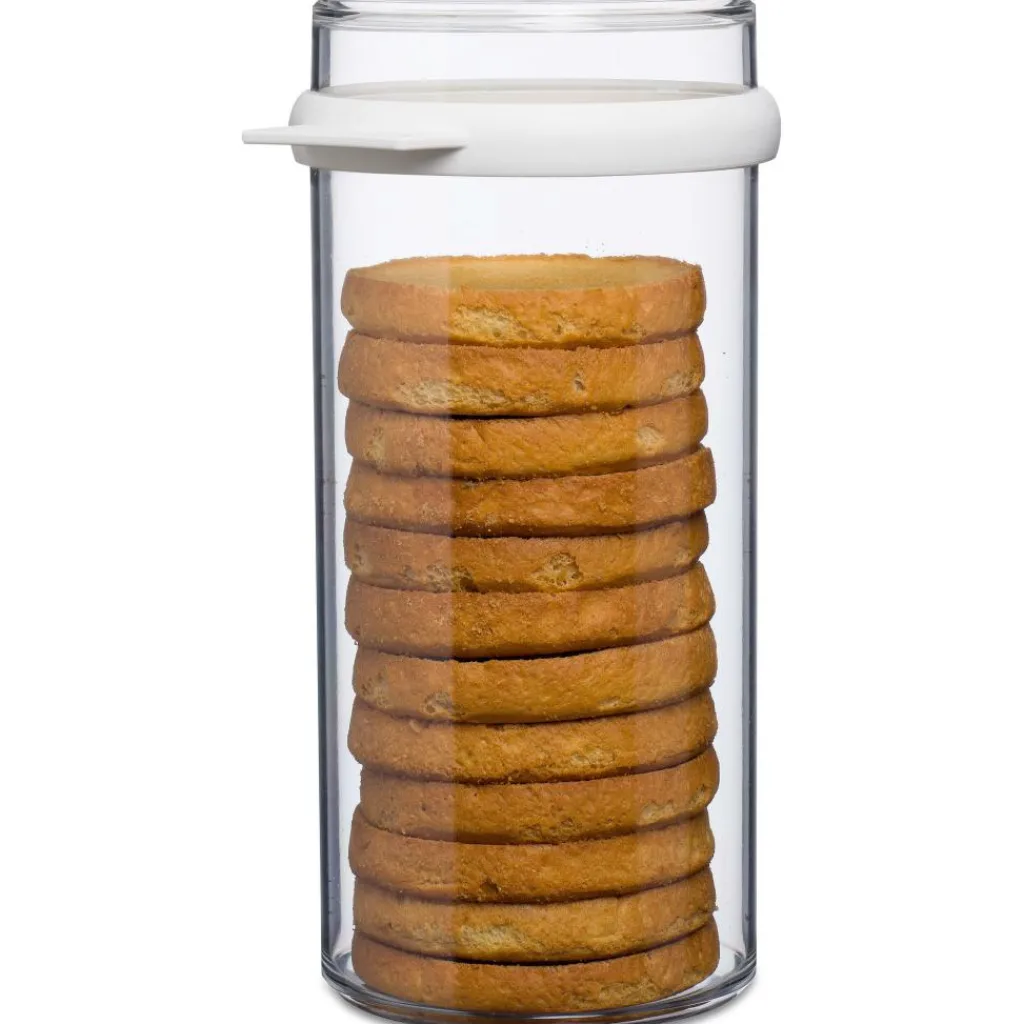 De witte Stora beschuitdoos van Mepal is doorzichtig en geeft u daarom gelijk zicht op de inhoud. De witte afdichtring zorgt voor een luchtdichte afsluiting, wat ervoor zorgt dat de beschuiten vers blijven. De beschuitdoos is gemakkelijk schoon te maken en kan bovendien ook in de vaatwasser gewassen worden.