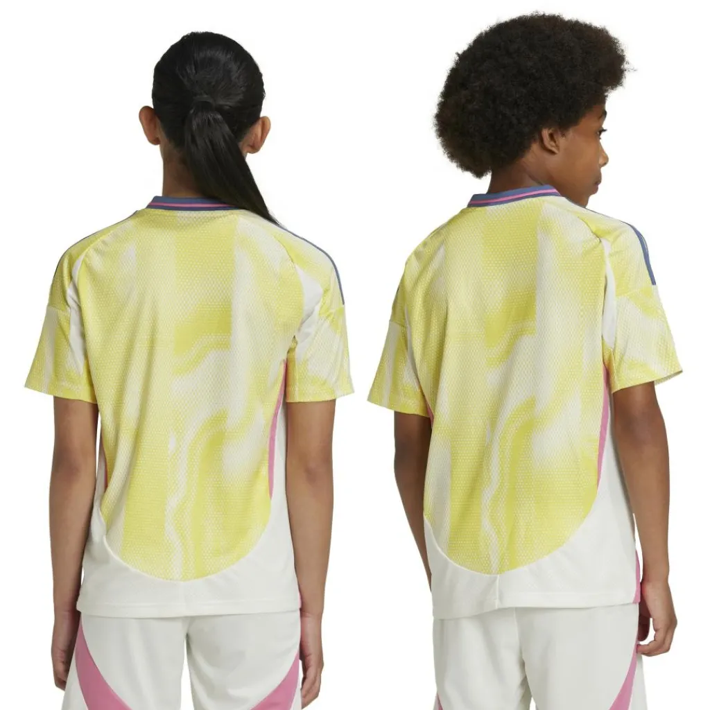 Het adidas Juventus uitshirt 24 – 25 voor kinderen heeft een subtiele kleur met blauwe accenten die voor een sportief design zorgen. Het shirt is perfect om in te trainen of voetballen, want het hoogwaardige materiaal droogt snel. Het embleem staat geborduurd op de borst, zodat uw kind goed kan laten zien voor welke club hij of zij is.