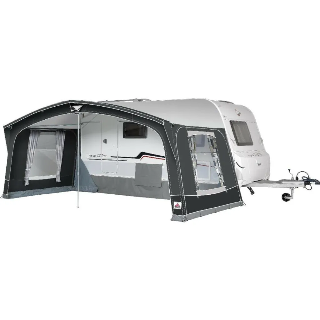 Met een 25 mm stalen EasyGrip frame en volledig Ten Cate All Season 240 g/m² doek is de Doréma Octavia voortent gemaakt voor zekerheid op de camping. Het moderne front past fraai bij nieuwe caravans en blijft ook bij intensief gebruik mooi in model.