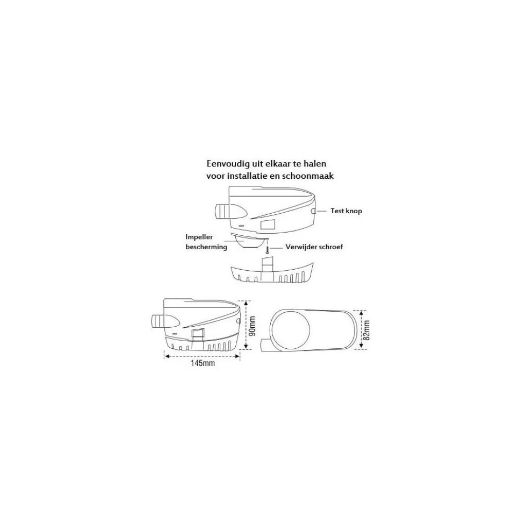 De bilge pomp is eenvoudig te monteren vanwege de los te klikken basis. Een groot voordeel daarbij is dat de pomp eenvoudig te vervangen is zonder deze opnieuw te hoeven monteren. Een vergelijkbaar model kan simpelweg op de basis worden geklikt.