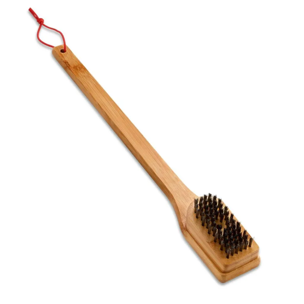 De Weber Bamboe grillborstel 45 cm is ideaal voor het efficiënt en gemakkelijk verwijderen van aangebakken etensresten, vet en vuil. Met de schuin geplaatste borstelkop reinigt u de grillroosters zonder zelf te dicht bij de hitte te komen.