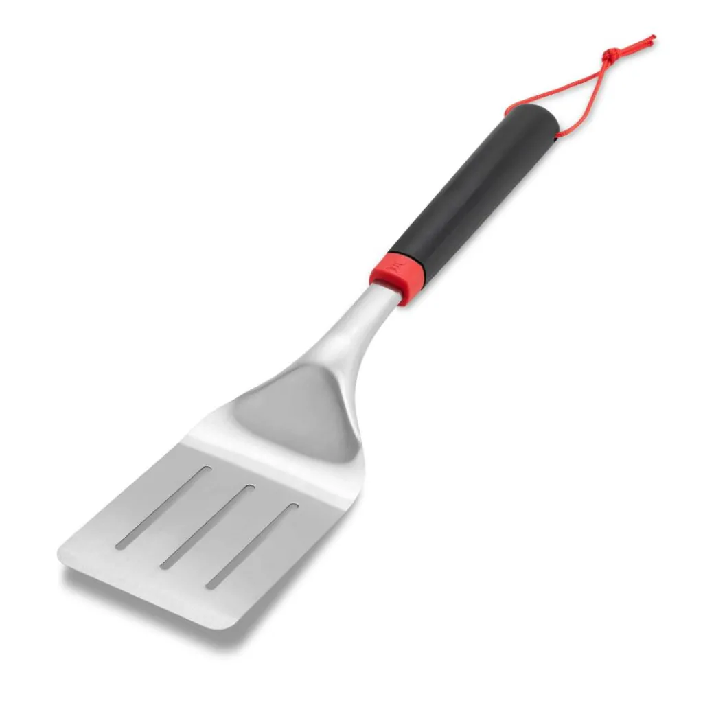 Deze Weber barbecuespatel is ideaal voor het probleemloos omdraaien van burgers. De spatel is lang genoeg om uw hand ver weg te houden van de warmte.