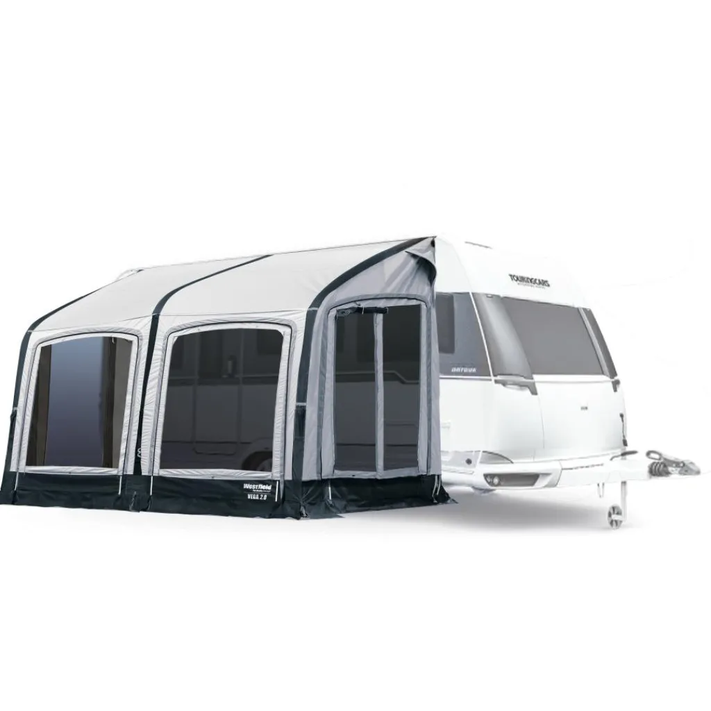 De Westfield Vega 330 2.0 is een opblaasbare caravan deeltent voor een aansluithoogte van 235 – 255 cm. Dankzij de snelle opzet en de royale leefruimte is dit model ideaal voor kampeerders die geregeld verkassen en toch comfortabel willen zitten en koken. De grote panoramavensters laten veel licht binnen en geven de voortent een open, ruimtelijk gevoel.