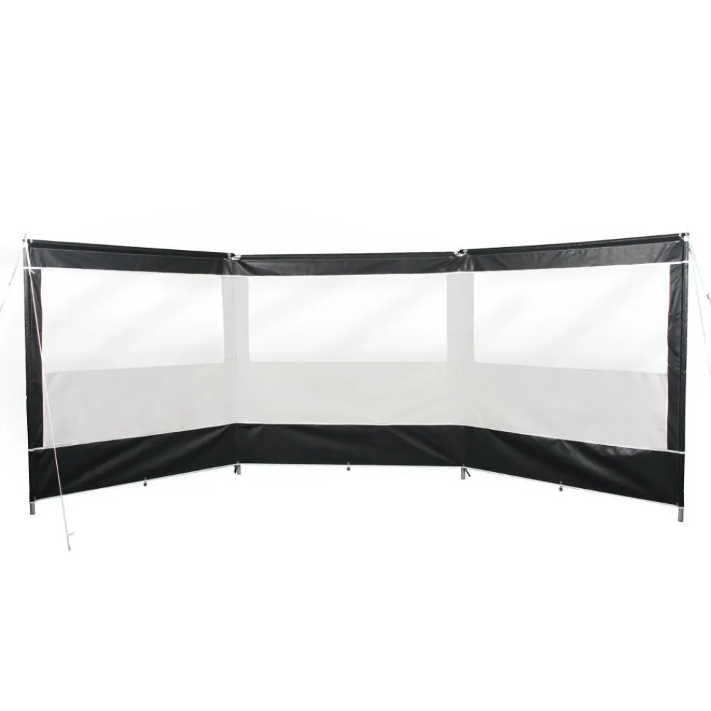 Het Esvo Premium windscherm bestaat uit 3 panelen, vervaardigd uit de beste materialen en daarmee geschikt voor het hele seizoen. U zet het windscherm eenvoudig op met scheerlijnen maar kan, door middel van grondankers, ook zonder scheerlijnen worden opgezet.